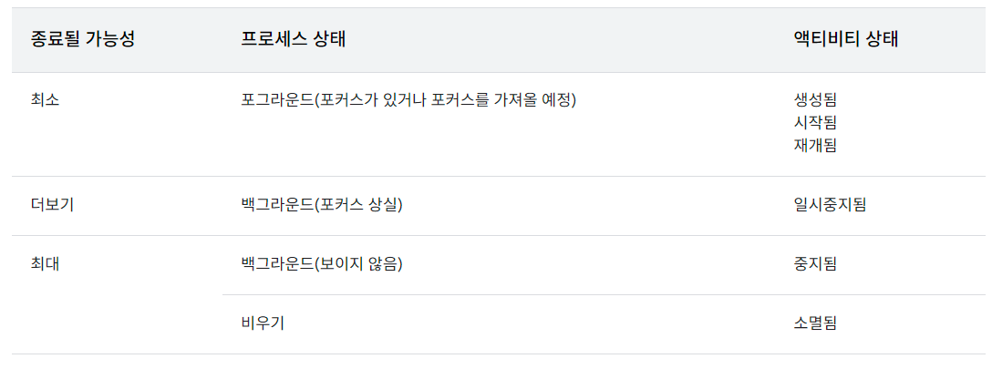 (사진 1, 사진 2 출처 : https://developer.android.com/guide/components/activities/activity-lifecycle?hl=ko