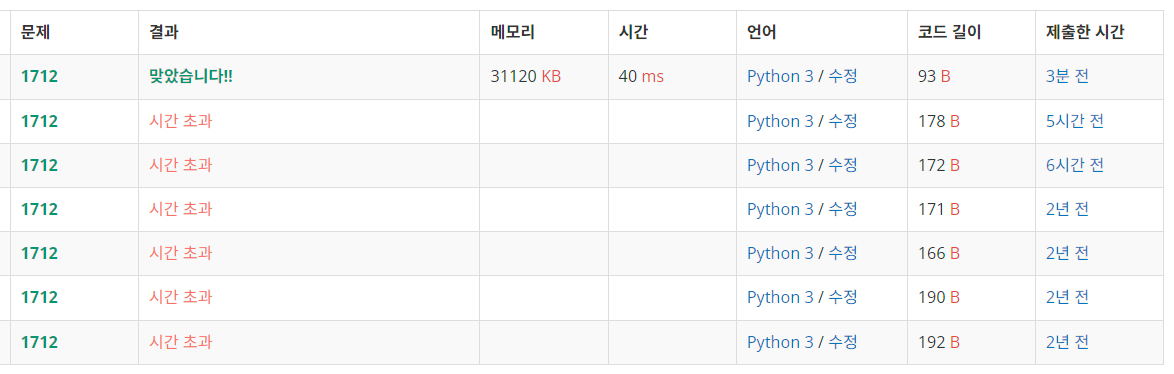 하지만 계속해서 시간 초과가 났고, 문제를 푸는 다른 방법이 있을 것이라 생각했다.