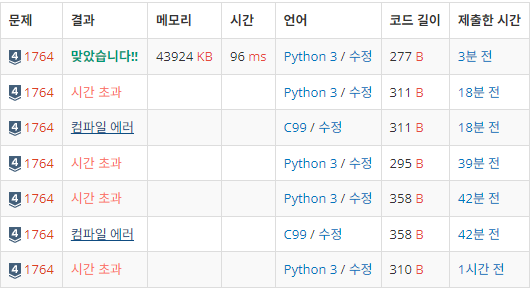 근데 이 코드는 짜면서도 '어라라 시간 초과 날 것 같은데'라는 생각을 했다.