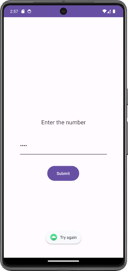 각각 apk를 실행했을 때의 화면, 숫자를 입력했을 때의 화면이다.