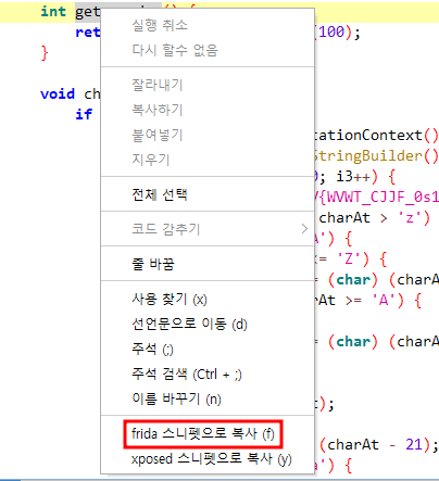 함수에서 우클릭을 하면 프리다 코드를 작성해줍니다