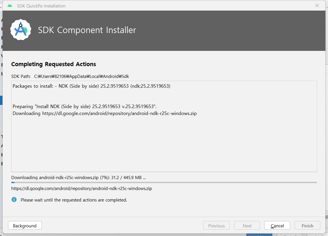NDK를 설치했다.