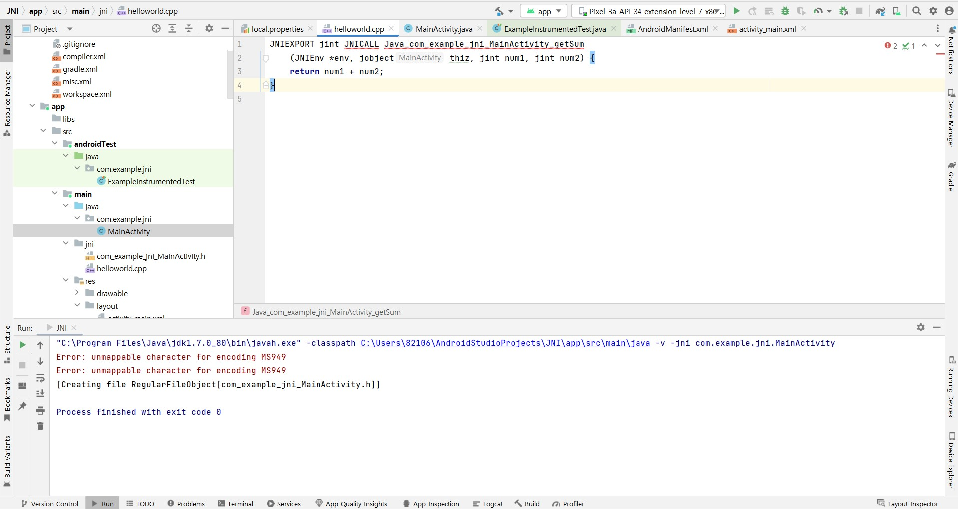 JNIEXPORT jint JNICALL Java_com_example_jni_MainActivity_getSum
