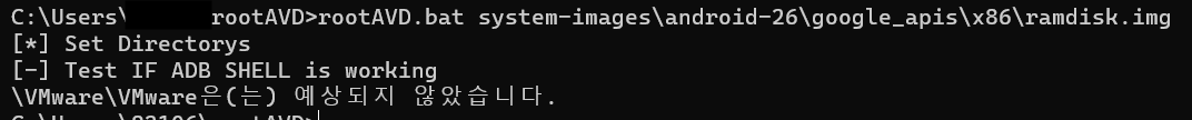 그 뒤 rootAVD가 존재하는 경로로 이동해