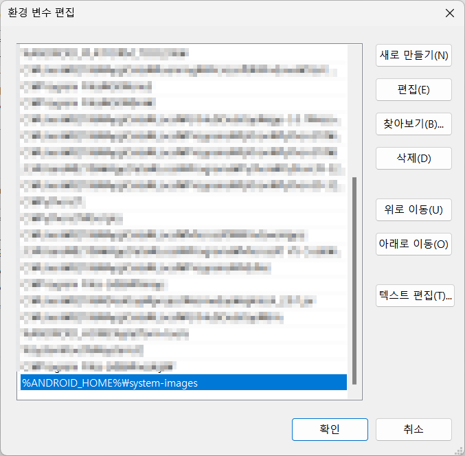 ANDROID_HOME과 $SDK_PATH$\system-images를 path에 추가하라고 합니다.